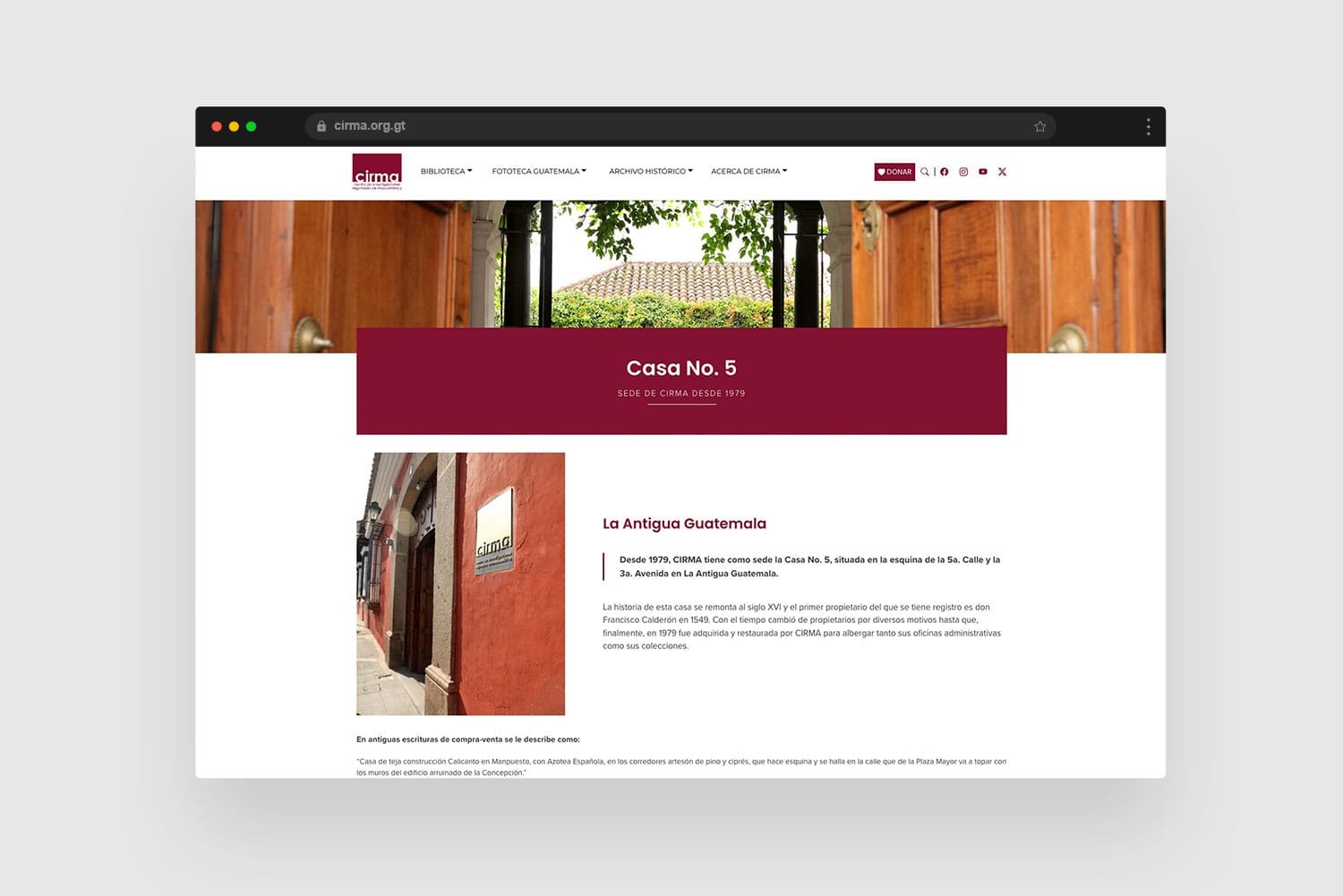Diseñamos el frontend y la experiencia de usuario del sitio web de CIRMA, una institución dedicada a la preservación histórica, documental y fotográfica de Guatemala. Nuestro enfoque fue crear una plataforma moderna, accesible y visualmente organizada, que facilitara la exploración de sus archivos, programas educativos y proyectos de investigación. Optimizamos la navegación para que los usuarios pudieran encontrar información de forma intuitiva, destacando la riqueza cultural y el impacto social de la organización. El resultado es un sitio funcional y atractivo que refuerza la misión de CIRMA y mejora la interacción con sus distintas audiencias.