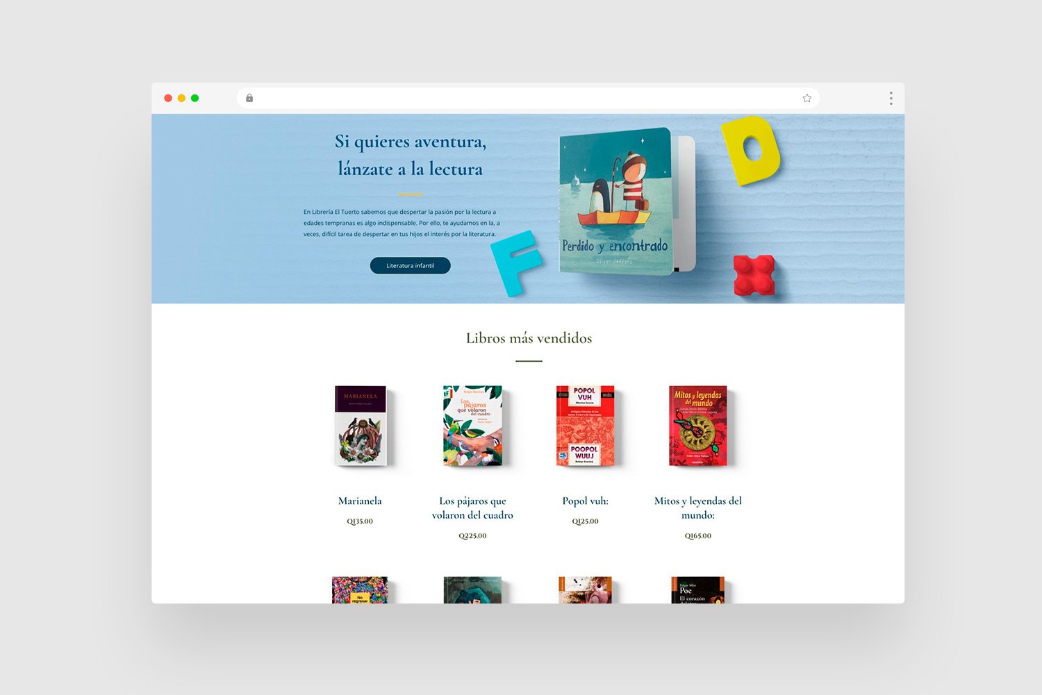 Librería El Tuerto es una librería ubicada en Antigua Guatemala, y como agencia desarrollamos su sitio web bajo un modelo e-commerce práctico y eficiente. Diseñamos una plataforma que permite gestionar pedidos y darles seguimiento a través de varias vías de comunicación, facilitando la atención al cliente y el flujo de ventas. El diseño conserva la identidad particular y distintiva de la librería, creando un entorno visual atractivo y coherente con su esencia. La navegación se estructuró para ser intuitiva, rápida y fácil de usar. El resultado es un sitio moderno, funcional y alineado con la personalidad única de El Tuerto.