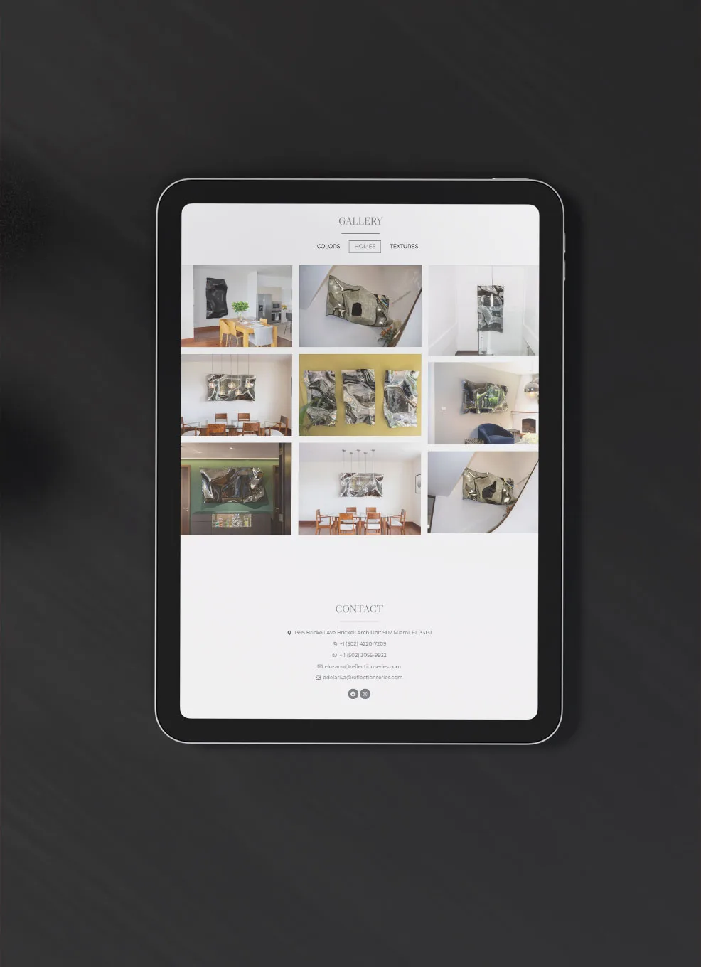 Como agencia, desarrollamos el sitio web The Reflection Series para el artista y arquitecto Arturo de la Riva, creando una experiencia one page intuitiva, estética y de fácil navegación. Nuestro enfoque fue destacar el trasfondo filosófico del proyecto: piezas que reflejan tanto las introspecciones del artista como las experiencias únicas de cada espectador, siempre cambiantes y distintas. Diseñamos una propuesta visual que acompaña la esencia de la obra, aprovechando el dinamismo del vidrio y el espejo, cuyas superficies moldeadas generan reflejos fluidos y en constante transformación. El resultado es una plataforma que realza la poética visual y conceptual de estas piezas vivas.